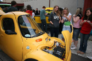 The after-school event included a talk by SEVA President Steve Lough and a car show featuring battery-powered automobiles that ranged from pickup trucks to single-seat three wheelers.