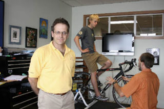 Moen uses a host of measuring devices to find the proper positioning for clients, adjusting their seat posts and handle bars to make long-distance riding less painful.