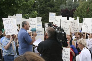 Members of the Northshore Education Assocation (NSEA) pressed their concerns about ongoing contract negotiations by picketing outside the Northshore School District headquarters Aug. 20.