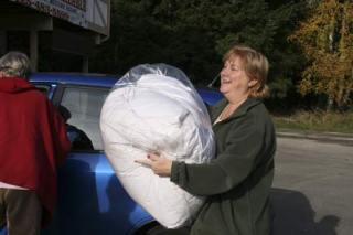 “Here comes a donation now,” she said as Muriel Wolff of Bothell exited her car and handed off a big bag of blankets.