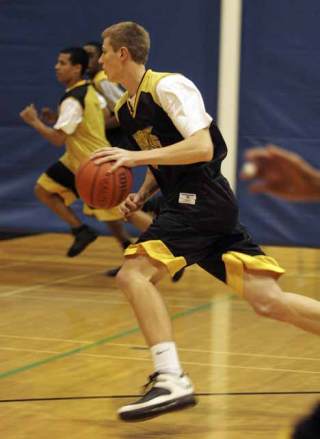 Football star Paul Ena decided to try out for hoops this year, and has already impressed the Viking coaching staff with his ability on the hardwood.