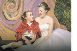 Little Red Riding Hood (Keaton Whittaker of Bothell) has a talk with Cinderella (Emma O’Melia) in Village Theatre’s KIDSTAGE production of “Into the Woods.” The musical runs through Jan. 18 at First Stage Theatre