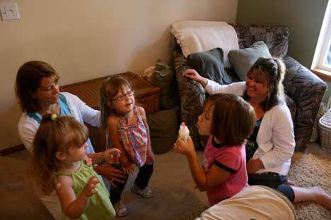 Sarah Clark calls a brief halt to the proceedings at the Lindsay home in Bothell. The family has been one of her clients for three years. On this occasion, Clark needs to run out to her car to grab a piece of PCV pipe.