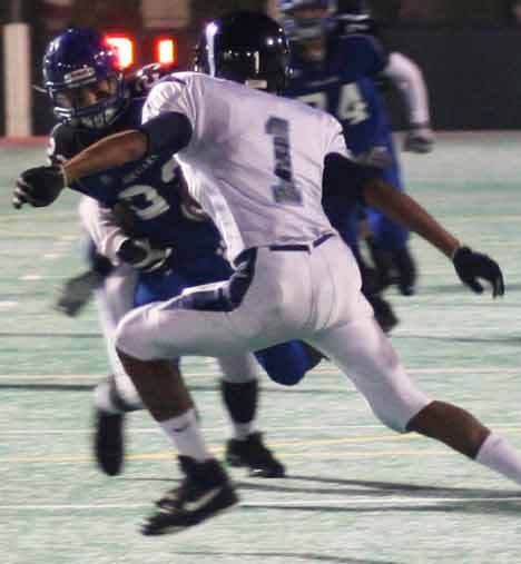Bothell High tight end Evan Hudson charges up field last Friday night against Rogers High.