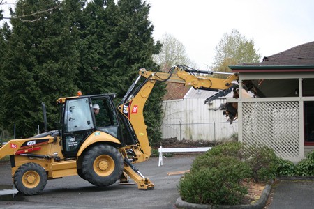And while Lamb didn’t exactly tear down a building, he did use a backhoe to take a nice chunk out of one corner of what used to be the Bothell Landing shopping strip.