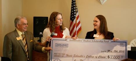 Heidi Schauble, right, of the Northshore School District’s Secondary Academy for Success received this year’s Ambassadors’ Student Scholarship presented by the Greater Bothell Chamber of Commerce May 12. Presenting her with the award is chamber member J.D. Davis, far left, and chamber Director of Operations Brittany Beck. Though still technically in high school, Schauble already attends Cascadia Community College through Northshore’s Running Start program. She received her award during a chamber luncheon at Country Village.