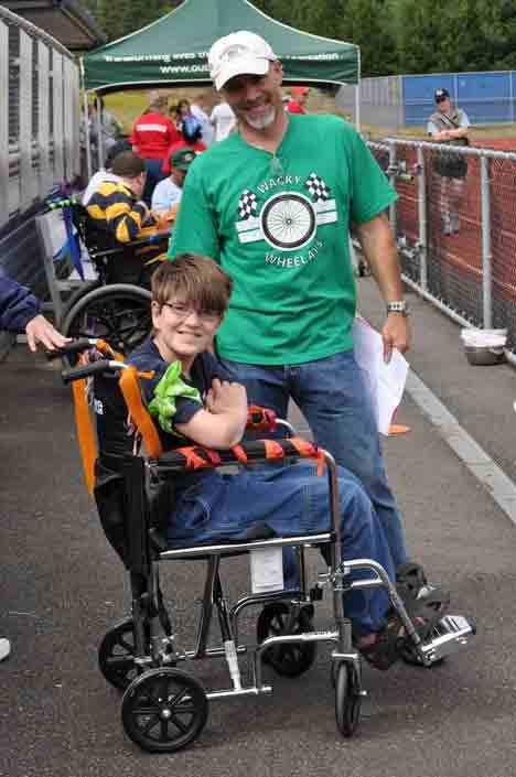 Dave Cornelison, standing, and Jim Yarborough enjoy the 10th annual Wacky Wheelays Aug. 8 at Bothell High’s track and soccer stadium.