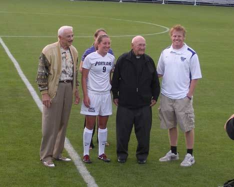 At the Pilots’ women’s soccer opener, baseball pitcher Dennis and soccer forward Danielle Foxhoven were named 2009-10 Fr. Chester Prusynski Student-Athletes of the Year.