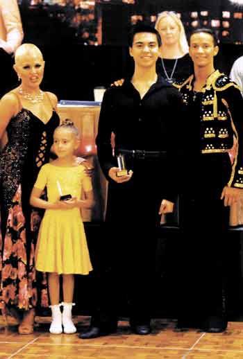Aaron Clark, 17, center, of Bothell recently won a “Champions of Tomorrow” trophy for his ballroom-dancing talents at the 2010 Northwest Dancesport Championships in SeaTac. Trophies go to dancers who are dedicated, hard working and competitive. Clark, a Woodinville High senior, is pictured with ballroom-dancing professionals Ekaterina Zakharoff and Yegor Novikov and young trophy winner Dascha Wright.