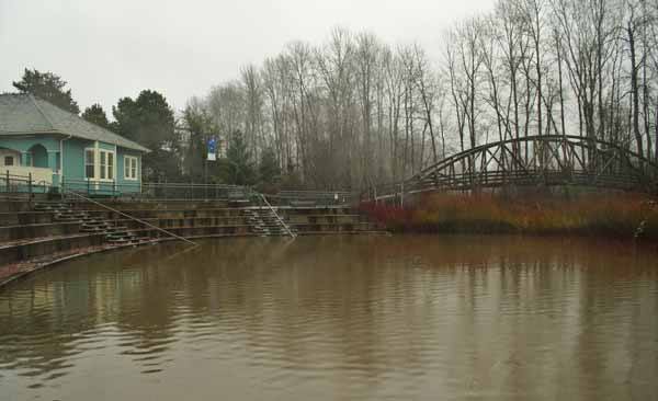 • The amphitheater at the Park at Bothell Landing was filled with just under three feet of water overflowing from the slough.