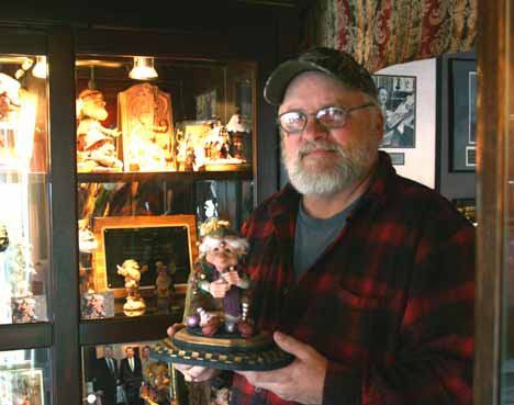 Surprisingly, his favorite piece — the only thing in his shop that is not for sale — is not a Santa, but a wise-looking elf with glasses and a fancy hat, seated comfortably. What makes the piece special?
