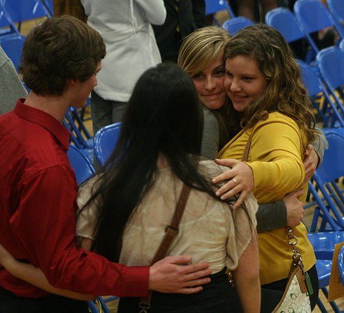 Other speakers were friend and colleague Katrina Allemeier, ASB co-presidents Jessie Zou and Nick Carey, friends Tony Sanchez and Jordan Graham, Inglemoor Junior Football coach Mike Brejda, principal Vicki Sherwood, brother Anthony Perry and son Drake (accompanied by a group of friends) while husband Keith watched from the front row.