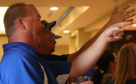 A group of about 70 North Bothell Little League fans and friends stormed the Hilton Garden Inn in Bothell to watch the game (see video).