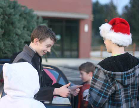 Gabriel Engel and Sam Campbell pushed, pulled and used all their strength when positioning a Christmas tree on a customer’s car roof and then tying it securely up there so the woman could drive home safely.