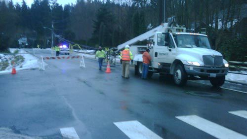 108th Avenue Northeast/112th Place Northeast between East Riverside Drive and Northeast 164th Place is still closed due to a fallen tree and power lines, which occurred last week.