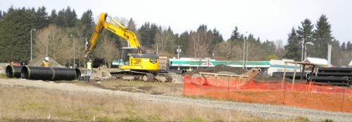 Workers on the job Thursday morning at the future Crossroads site — north of the Park at Bothell Landing — are involved with the initial storm-drain project to facilitate property development along Bothell Way Northeast. As downtown development proceeds, the Multiway Boulevard will begin to take shape by constructing initial phases of roadway work beginning in late 2012.
