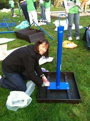 KaBOOM! doesn’t build playgrounds for communities, it shows communities how to build their own playgrounds. On build day, a crowd of volunteers gather and put together the new play equipment, much like an old-fashioned barn raising. Even Kenmore Mayor David Baker and his wife, Sheri, participated in the community-build day at Kenmore Elementary.