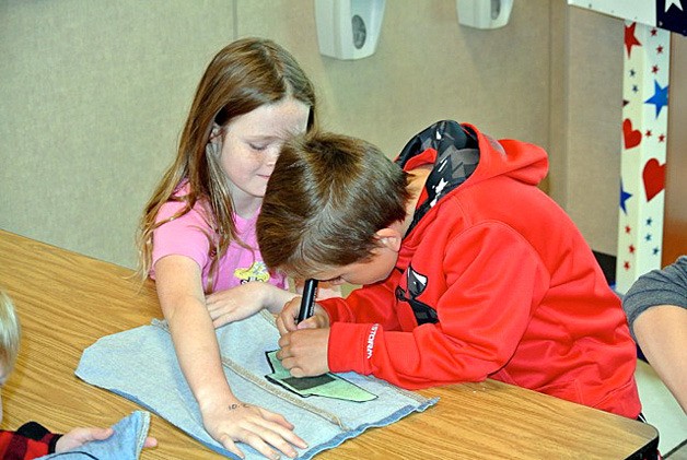 Students at Canyon Creek Elementary in Bothell cut out material for a special project.