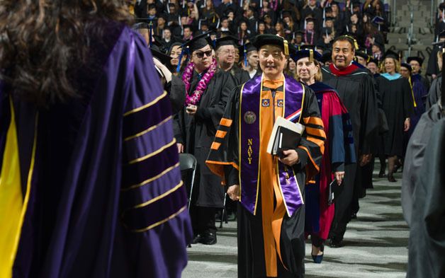 While most graduates donned their caps, gowns and academic stoles at UW Bothell’s 23rd Annual Commencement Ceremony, Student Veteran Association president Michael Thom and more than 30 other graduates wore a brand-new stole around their necks specially designed for our military veteran, a first for the University of Washington tri-campus.