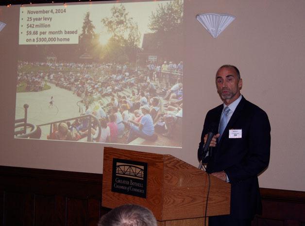 Bothell City Manager Bob Stowe provided attendees of the Greater Bothell Chamber of Commerce luncheon with information on the upcoming parks and public spaces levy, coming to the Nov. 4 ballot.