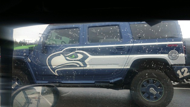 This Seahawks inspired Hummer 2 (H2) was seen driving along NE 116th Street in Kirkland.