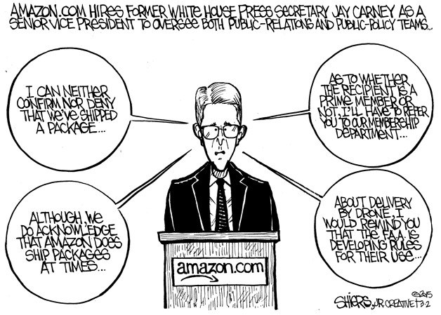 Jay Carney will oversee public relations for Amazon.com | Cartoon