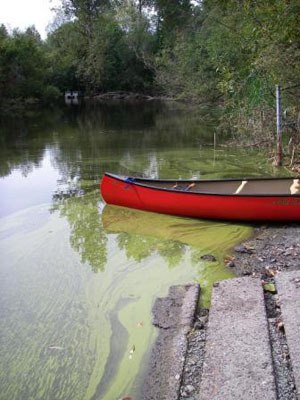 Blue-green algae patches, also called scum, is toxic and can cause serious problems, exposure to liver-toxins are flu-like and can include weakness, abdominal pain, diarrhea and vomiting. Children and pets are at the highest risk for exposure illness.