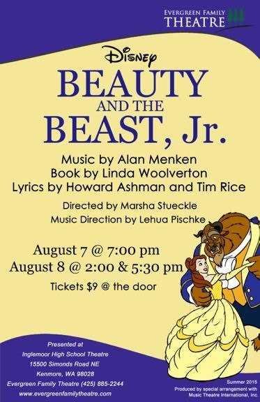 The Evergreen Family Theatre will present Beauty and the Beat, Jr. Aug. 7-8 at the Inglemoor High School Theater.