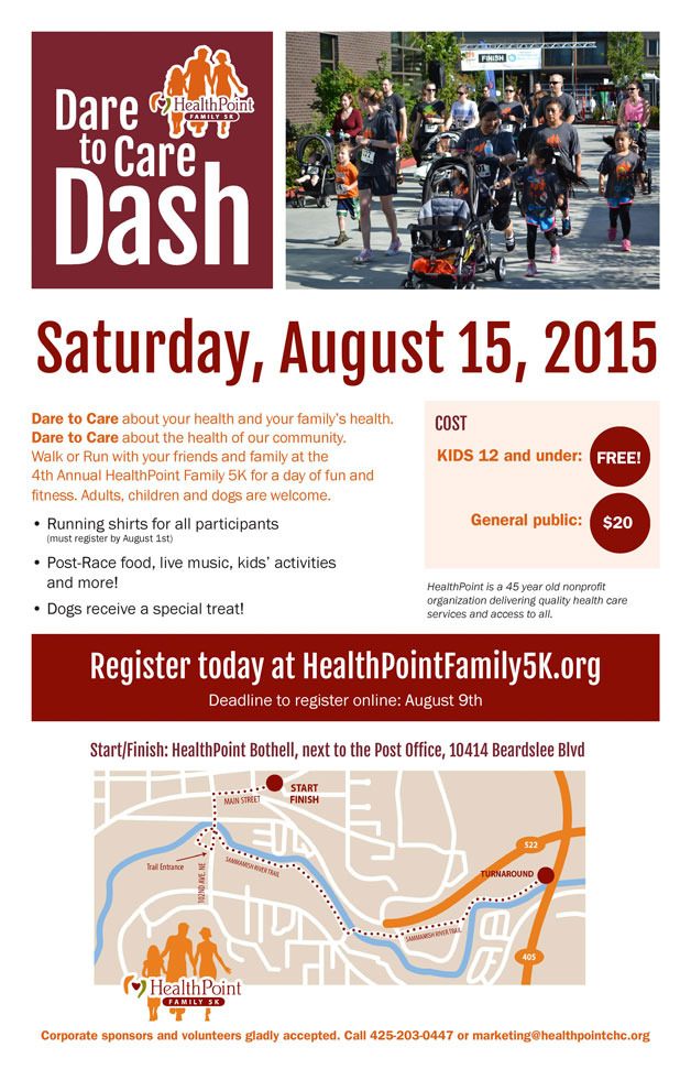 Bothell’s HealthPoint is hosting its annual Family 5k, called Dare to Care, starting at 9 a.m. on Saturday, Aug. 15.