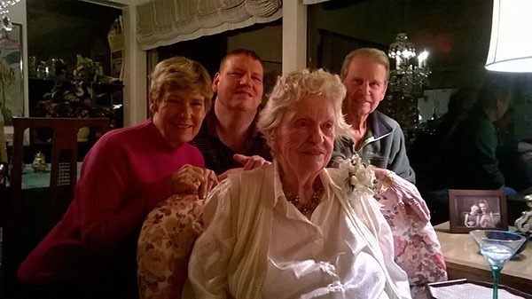 Marie Martin (center) surrounded by family in her Kenmore home on her 100th birthday.