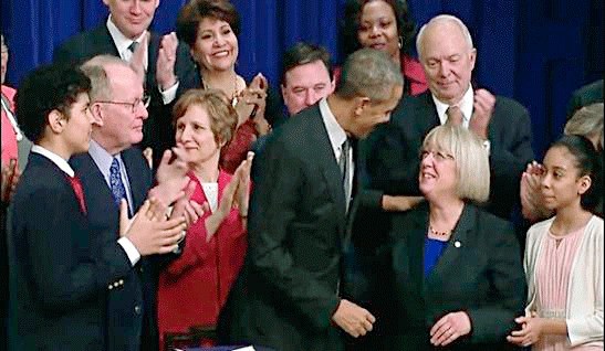 Bothell resident and US Sen. Patty Murray with President Barak Obama at the signing for the new education reform bill.