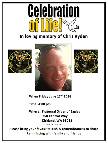 A Celebration of Life for Ryden has been scheduled at 4 p.m. today at Fraternal Order of Eagles in Kirkland.