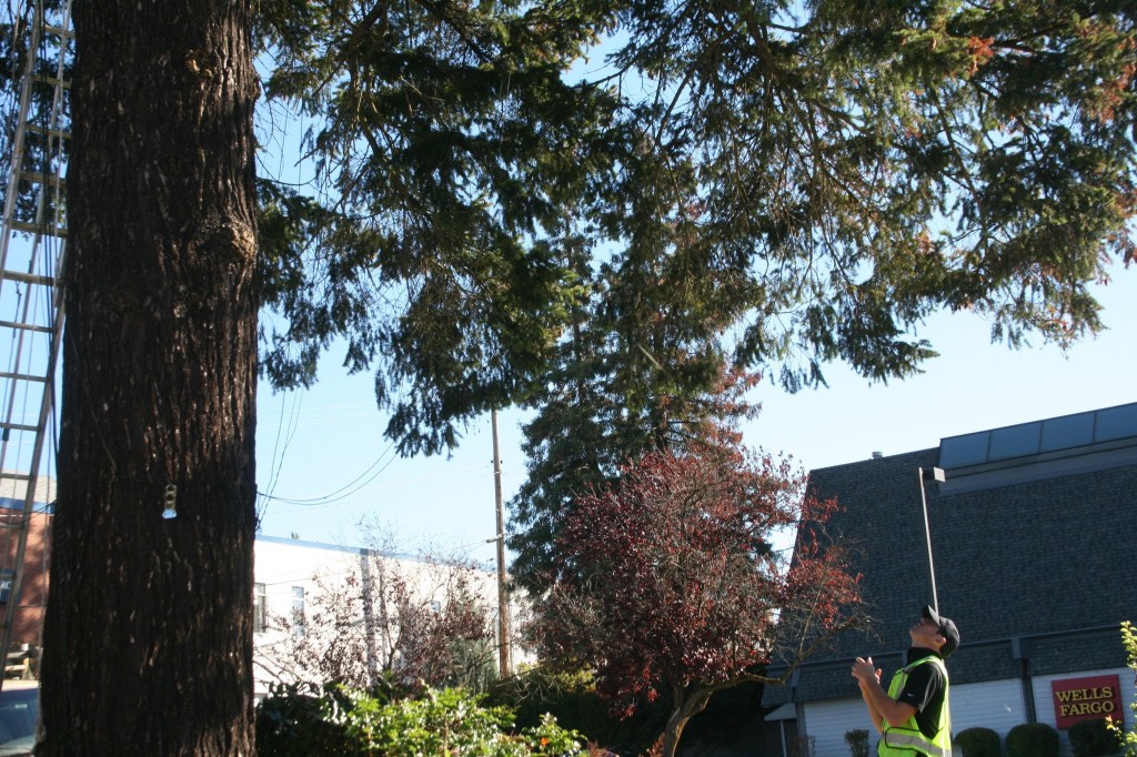 Singed needles from this summer’s fire on Main Street turned out to be the least of the problems when it came to stringing up the lights on the tree. Ryan Fleming, owner of Fleming’s Holiday Lighting, discovered the top of the tree was rotting when he and his crew went to start decorating it last month.