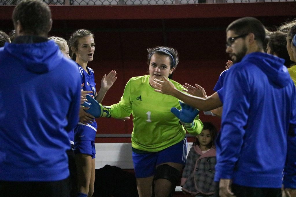 Bothell goalkeeper Emily Heffernan takes the field before the Cougars’ regular season finale against Inglemoor. Bothell beat Eastlake 3-2 in penalties on Oct. 31. JOHN WILLIAM HOWARD/Bothell-Kenmore Reporter