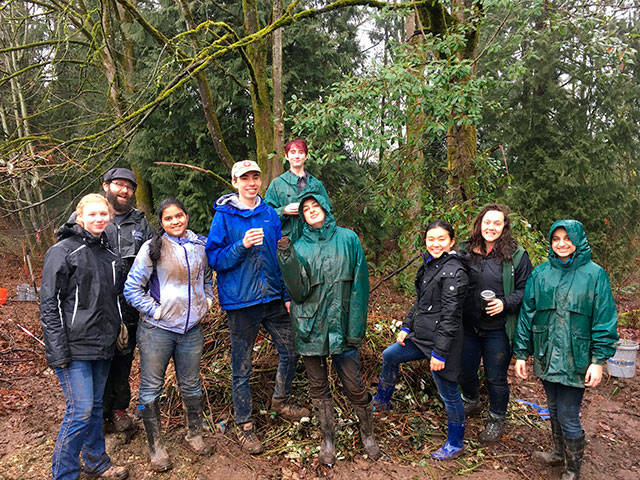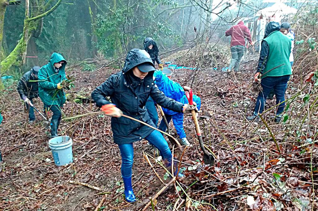 Seven shovel-ready Northshore School District teens showed their commitment on a cold and rainy winter Saturday by digging in to Bothell’s North Creek Forest.