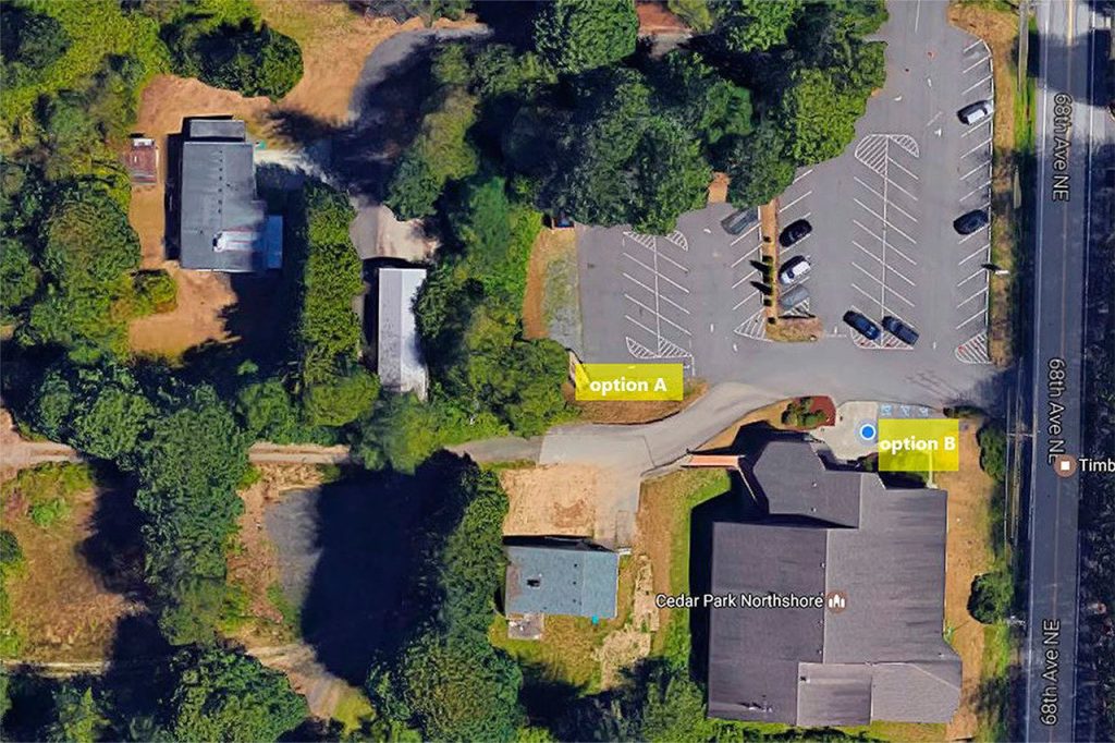 The Kenmore Community Market will be located in the Cedar Park Northshore Church parking lot closest to 68th Avenue NE, as shown in this aerial view provided by the church. Contributed art