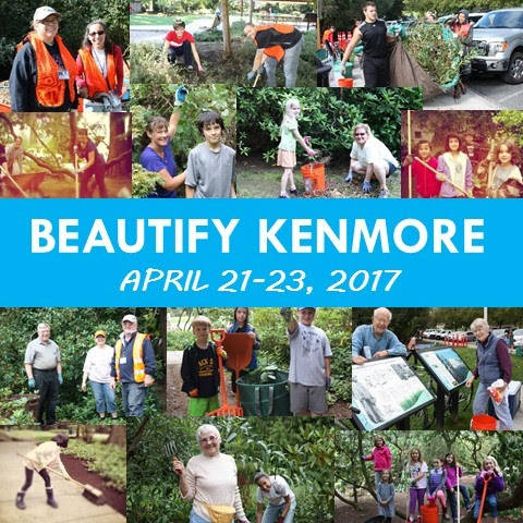 Beautify Kenmore will be held during Earth Day weekend, Friday, April 21, through Sunday, April 23. During this time, Kenmore residents — neighbors, volunteer groups, community organizations — come together to spring clean the city’s neighborhoods.
