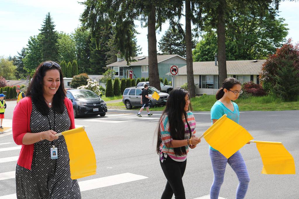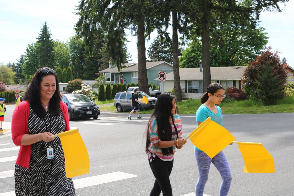 After installing flags at key school crossings in Bothell, the city plans to expand to other high-pedestrian areas such as parks. For more information, visit www.bothellwa.gov/safestreets.