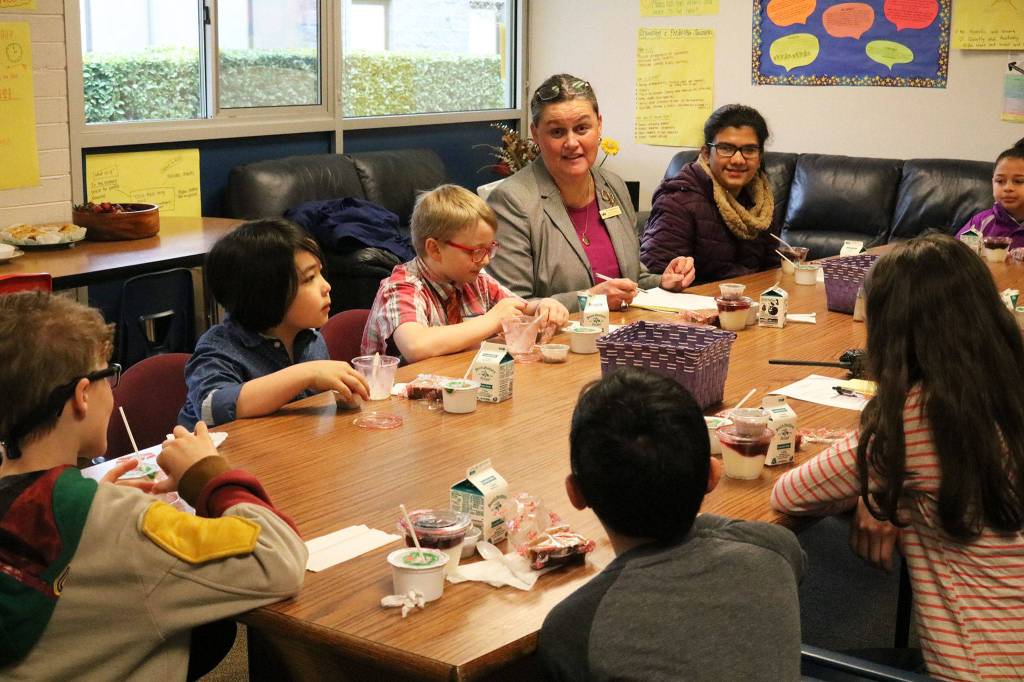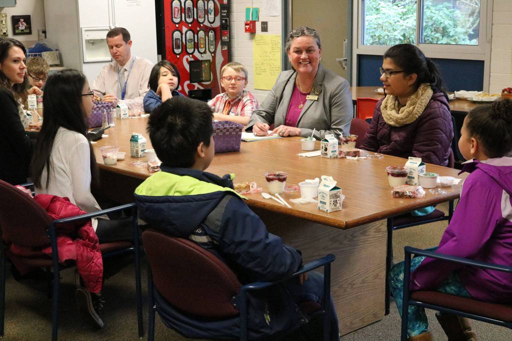 The Reporter tagged along on her visit to Crystal Springs Elementary School in Bothell, where she started her day by sharing breakfast with nine students, principal May Pelto and assistant principal Mark Robb.
