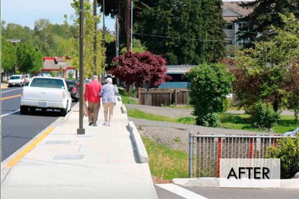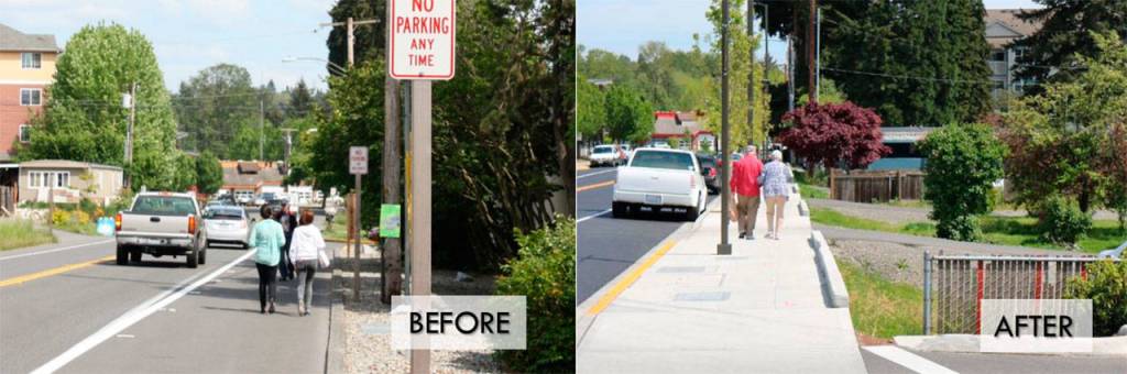 NE 181st St. before and after the new and improved sidewalks.