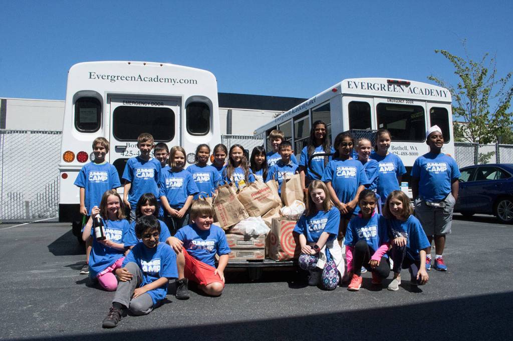 On Friday, students from Evergreen Academy Elementary School’s summer camp program donated 259 pounds of non-perishable food and other items to the Hopelink location in Kirkland.