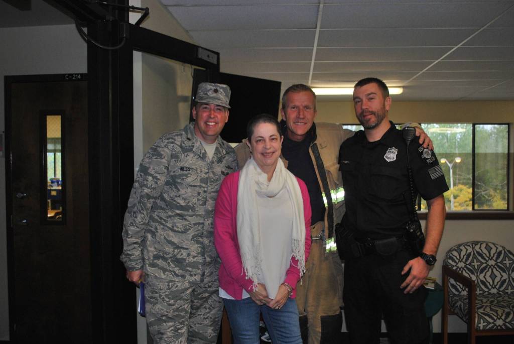 The school had firefighter Adam Lamb, veteran Jonathan Ness and police officer Jeremy Pinkerton stand at the main door of the school greeting students as they arrived.