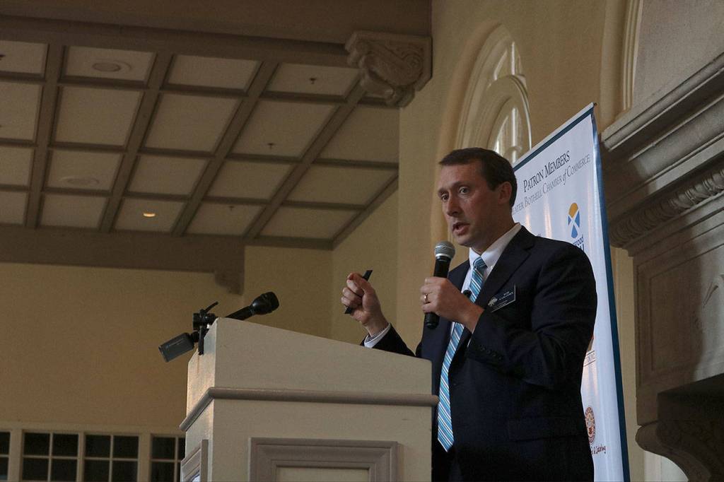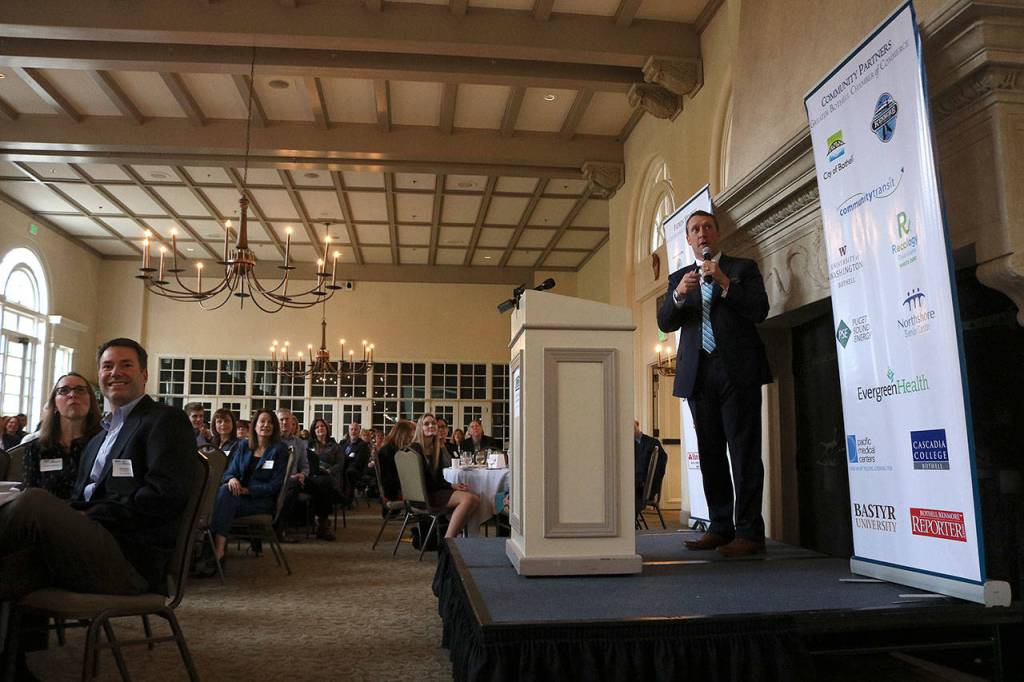 The event was hosted by the Greater Bothell Chamber of Commerce at the Inglewood Golf Club. Karlinsey was the keynote speaker, opening with excitement for the chamber’s upcoming name change to include Kenmore due to the large number of Kenmore businesses in the organization.