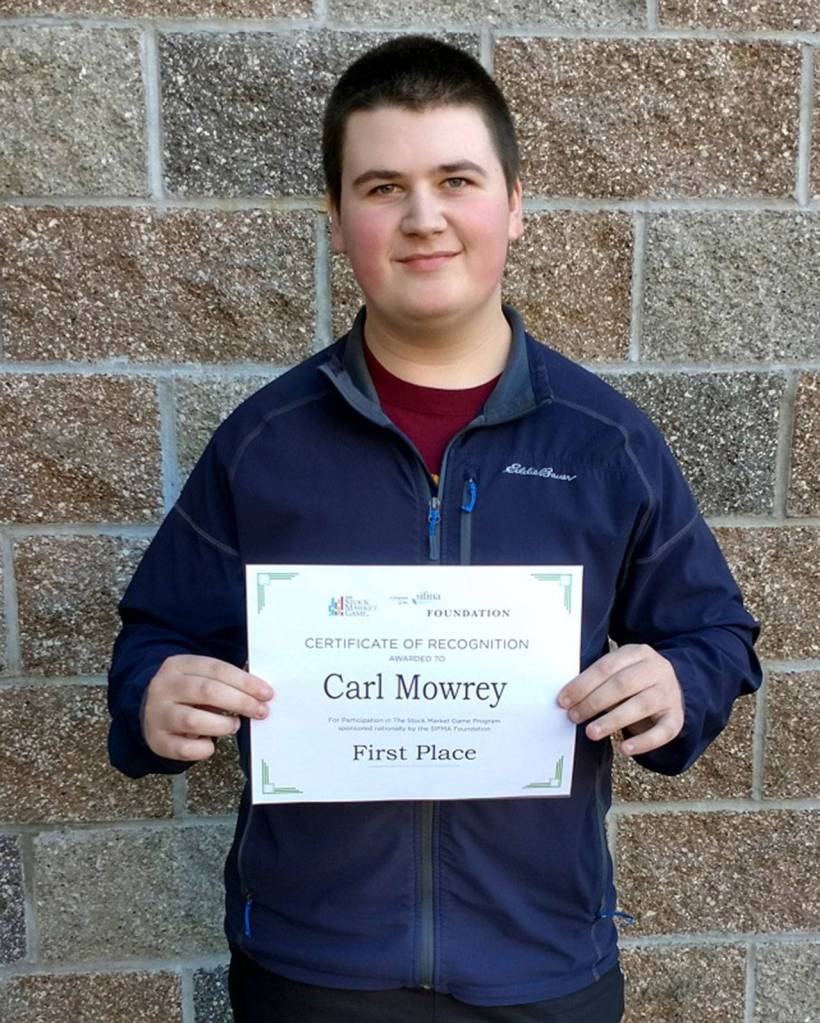 Bothell High School student Carl Mowrey’s portfolio competed against 248 other students in the state and won first place in a 10-week online stock market challenge.