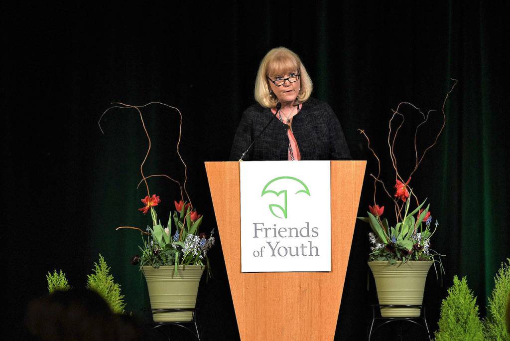 President and CEO Terry Pottmeyer addresses the crowd at the 13th annual Celebration of Youth luncheon. Photo courtesy of Friends of Youth
