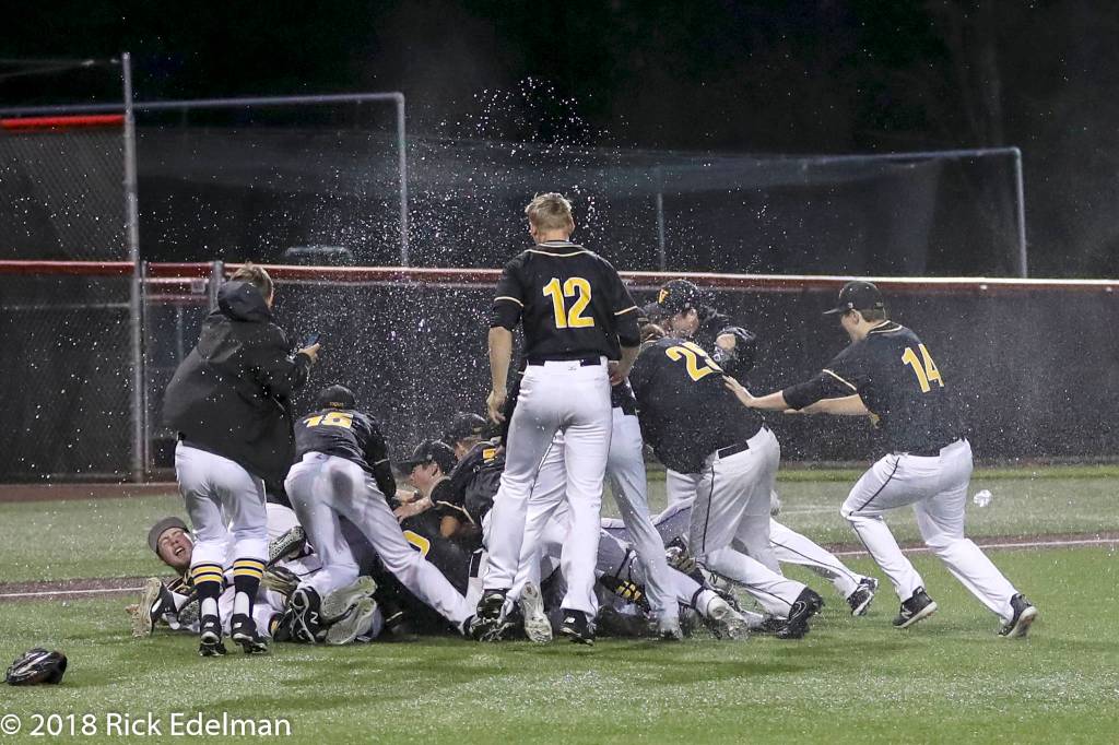 When it was all over, Inglemoor Vikings head coach Craig Bishop tried to escape as his players made a beeline for him near the middle of the infield for a celebration of epic proportions.