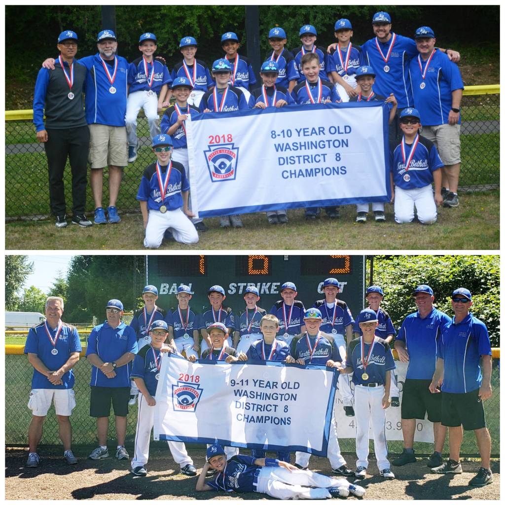 The 8/9/10 North Bothell Little League baseball all-star team (top) won its District 8 tournament on July 1 and played in the state tournament at Lyndale Park in Lynnwood. The 9/10/11 NBLL baseball all-star team won its District 8 baseball tournament on July 7 and competed in the state tournament in SeaTac. Both state tourneys took place after the Reporter’s deadline.