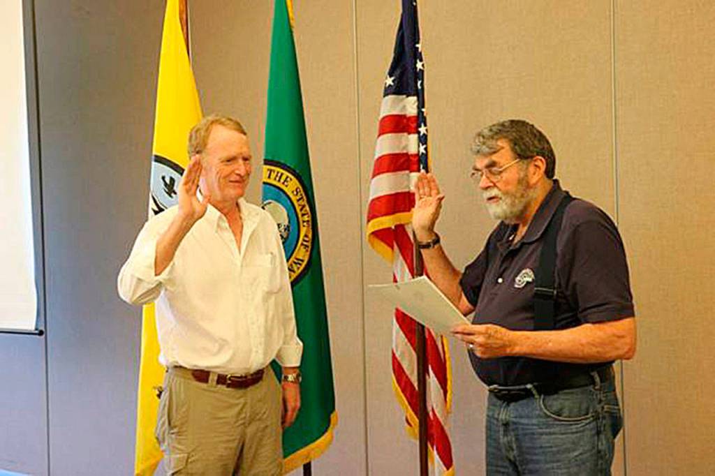Prior to Mortimer’s swearing-in ceremony, District Board Secretary Don Ellis honored former Commissioner Peterson for his distinguished career of public service. In addition to nearly 10 years representing NUD, Peterson also served as fire chief for Northshore Fire Department, with a 34-year career in the fire service.
