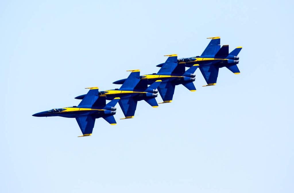 The U.S. Navy’s Blue Angels, a team of blue and gold F/A-18s developed and produced by Boeing, also performed for Seafair spectators, flying in formation and executing thrilling tricks above cheering crowds.