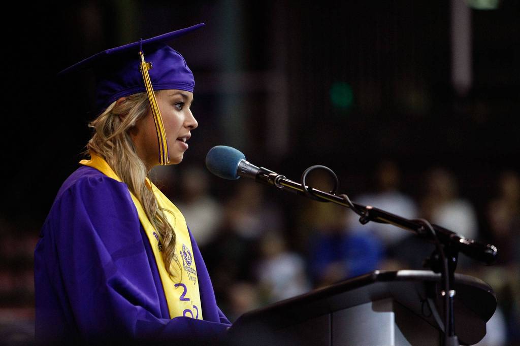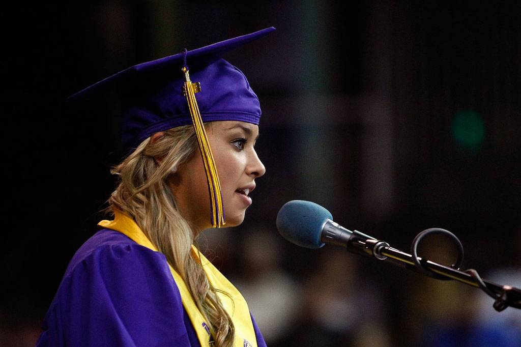 Ivy Jacobsen testified during three trials — the first two ended in mistrial when juries couldn’t agree on a verdict. With those ordeals behind her, she received a standing ovation on June 10, 2014, when she spoke at Lake Stevens High School’s commencement.